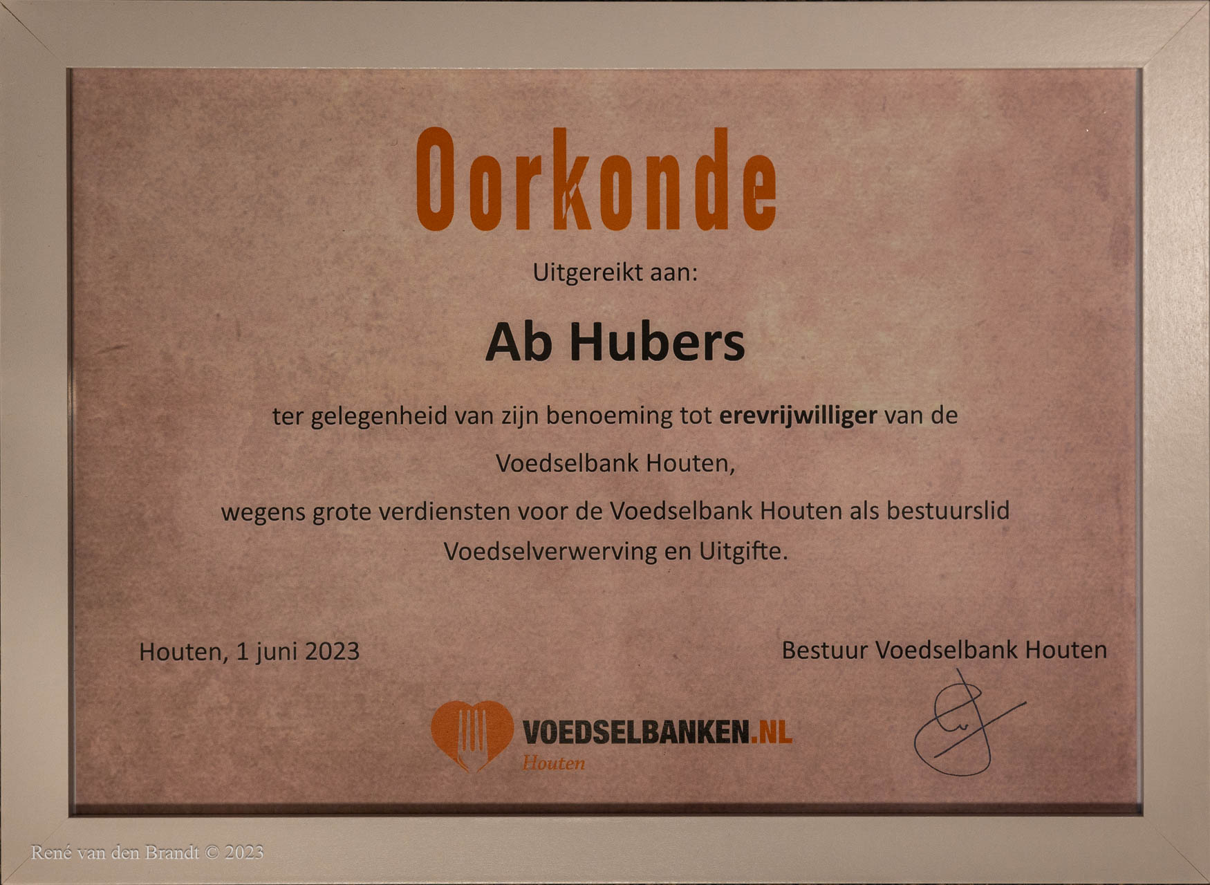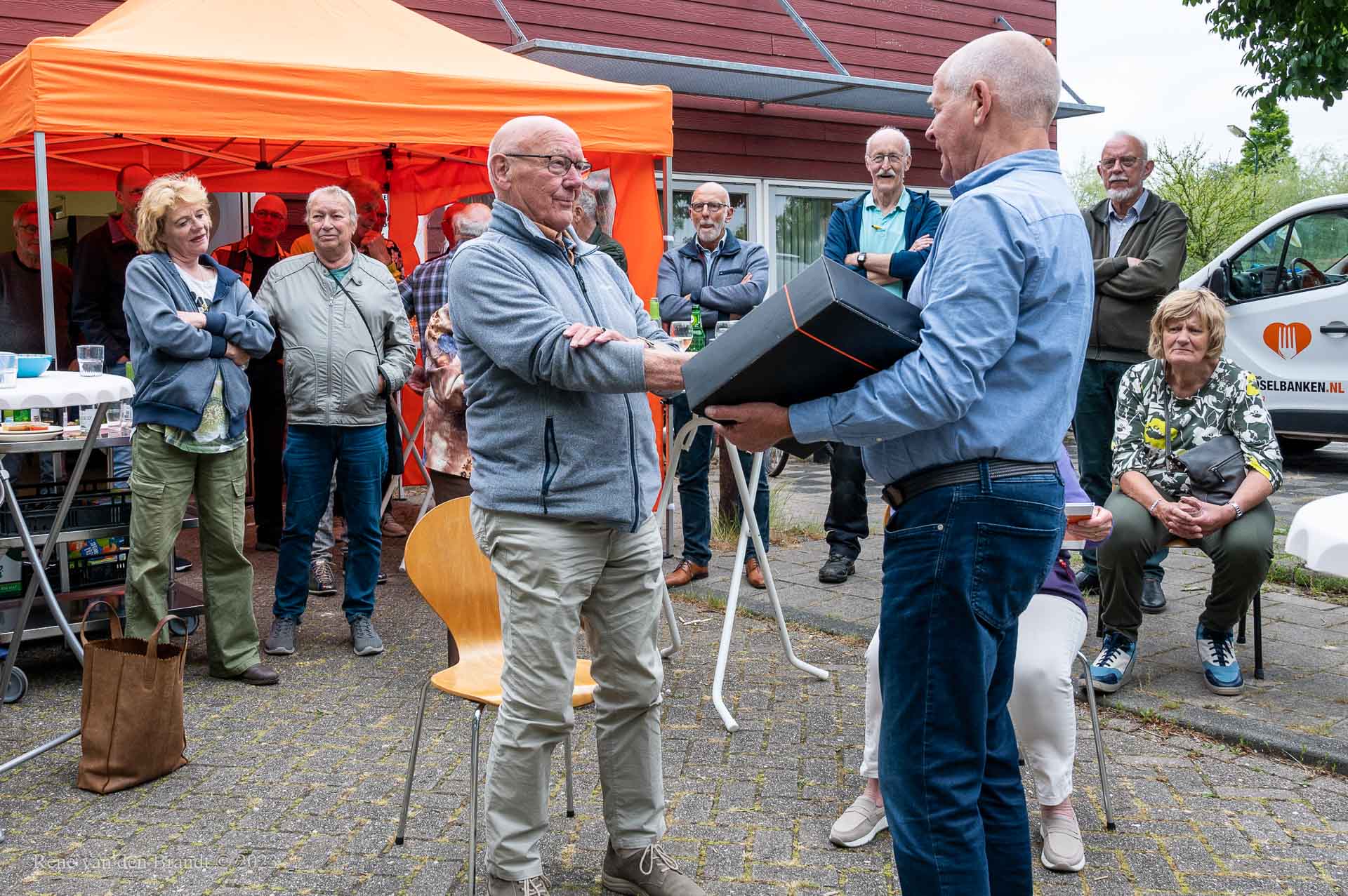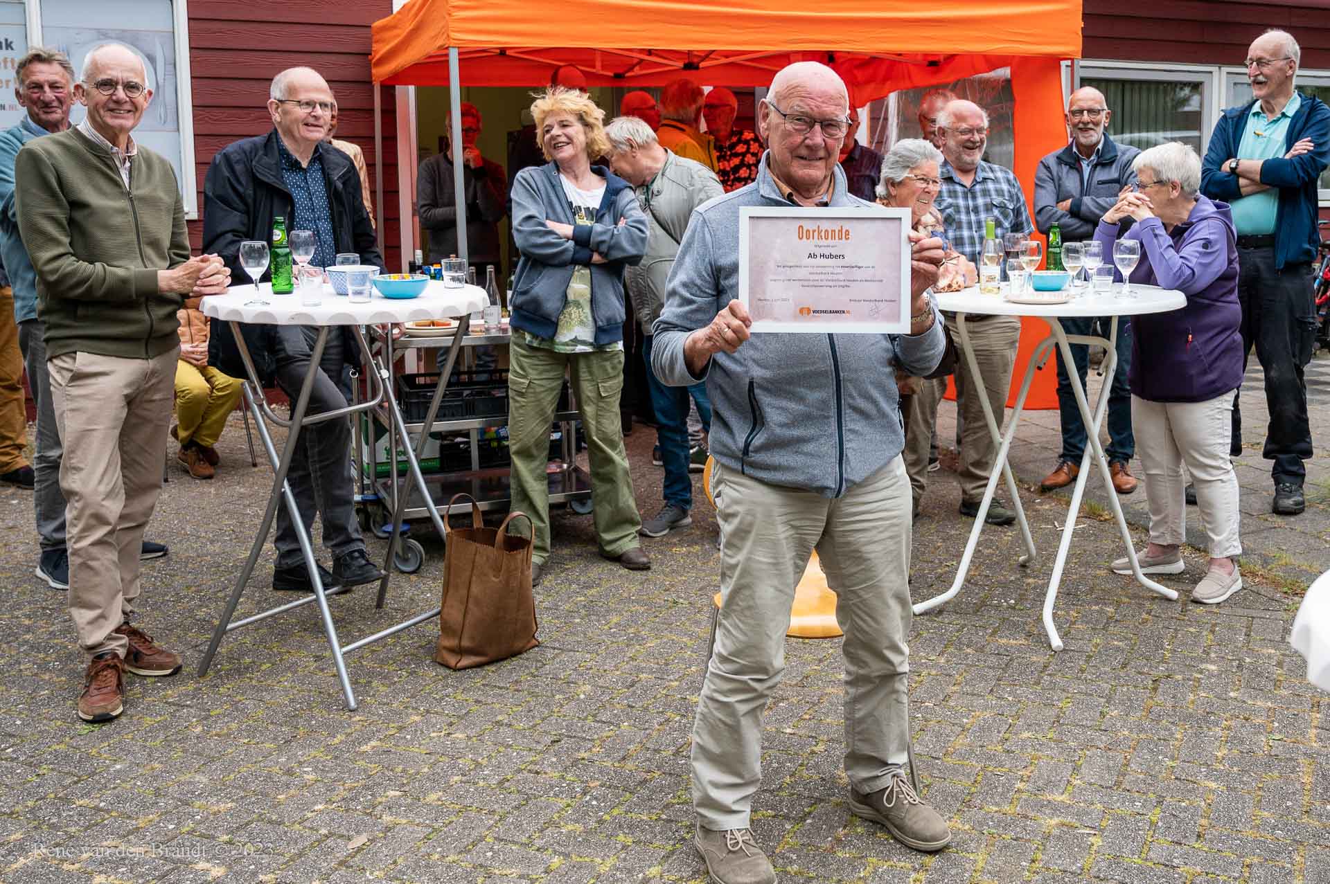 Na 12,5 jaar bestuurslid te zijn geweest, heeft Ab Hubers het bestuur van de Voedselbank Houten verlaten. De vrijwilligers hebben hem in het zonnetje gezet en hem tot erevrijwilliger benoemd. Namens de gemeente Houten en de Houtense samenleving heeft Wethouder Sander Bos zijn waardering en dank uitgesproken voor Abs jarenlange inzet.