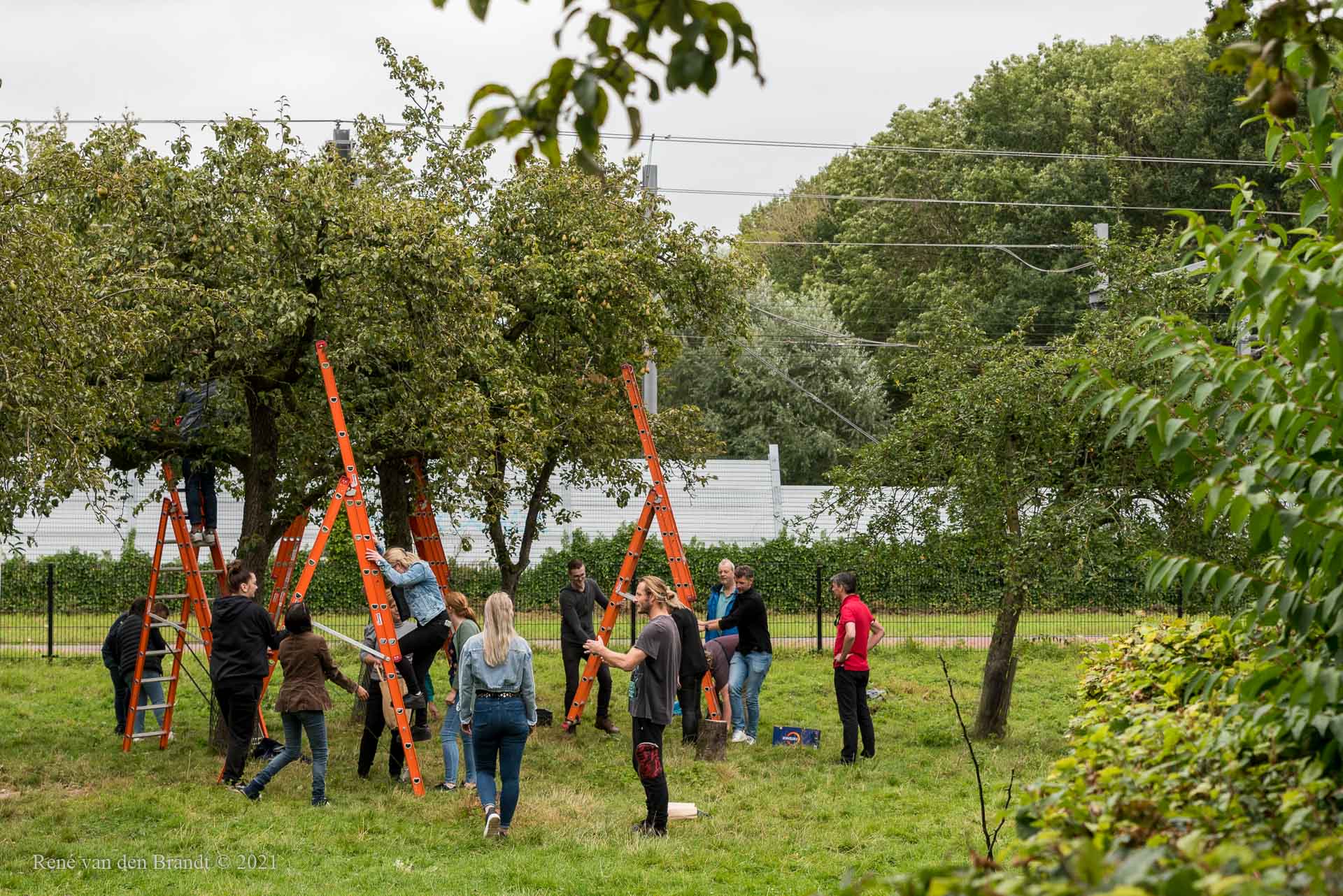 Een tijdje geleden werden we gebeld door Lister de Boerderij, een woonvoorziening voor mensen met een psychiatrische of verslavingsachtergrond aan de Nieuwe Utrechtseweg. De appels en peren in hun boomgaard waren voor ons, als we ze zelf zouden plukken. Toevallig waren we net gebeld door Anticimex, een Houtens bedrijf dat zich bezig houdt met plaagdiermanagement. Zij waren op zoek naar een goede-doelen-project om met het team te doen. We hebben vraag en aanbod samengebracht, en dat resulteerde in een teamuitje van Anticimex op locatie bij Lister de Boerderij, waarbij medewerkers van Anticmex de appels en peren voor de voedselbank hebben geplukt.