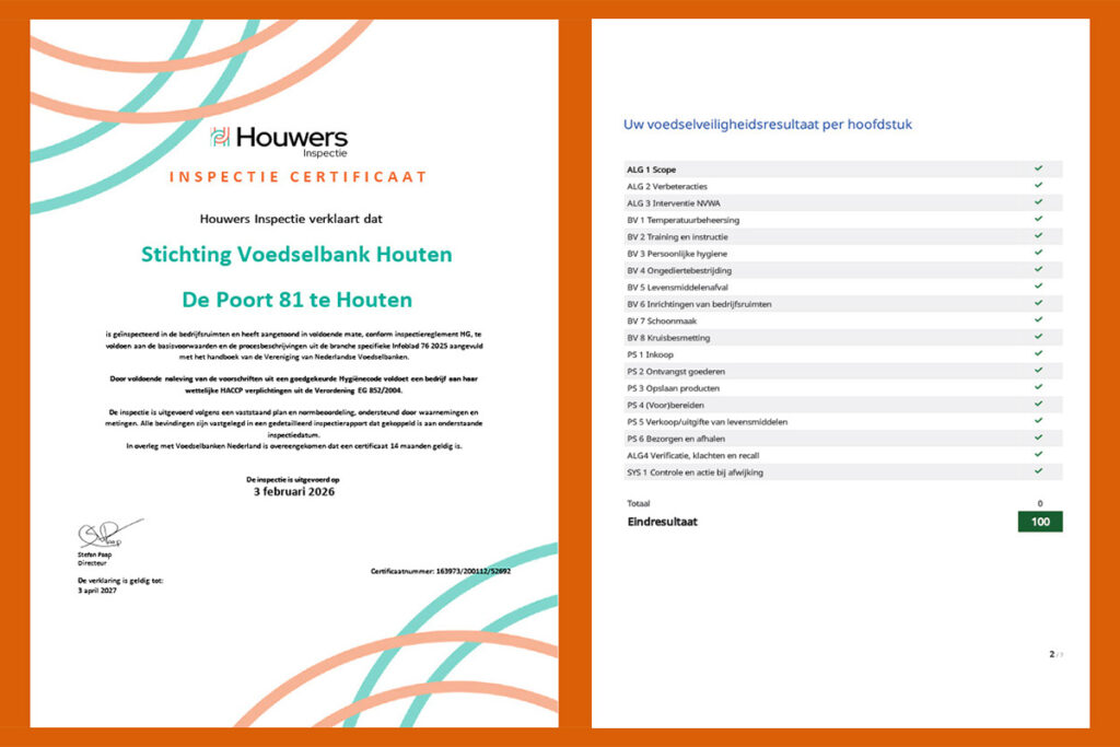 Voedselbank Houten opnieuw maximale score voor voedselveiligheid