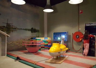 Het gezellige restaurant, met een ruime speelhoek, en de stapel tegoedbonnen.