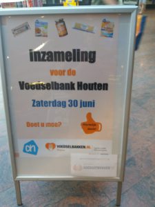 Vandaag (30 juni) heeft AH Houten Het Rond samen met Voedselbank Houten een inzameling gehouden bij hun filiaal. Diverse vrijwilligers vanuit de Voedselbank deelden vandaag folders uit waarop klanten konden zien welke producten de Voedselbank het hardst nodig heeft. Hieraan gaven de klanten massaal gehoor waardoor de inzamelingsactie een groot succes is geworden. Dit blijkt wel na inventarisatie van alle ingeleverde producten: