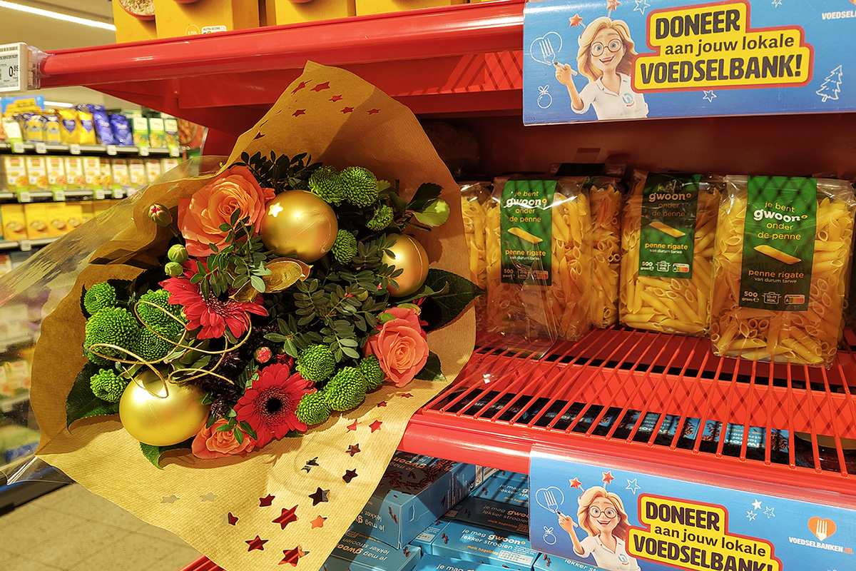 Op 13 december was er één klant die een volle mand producten kwam afgeven. Daarin voor negen gezinnen rijst, pasta en olijfolie. Alles voor de voedselbank.