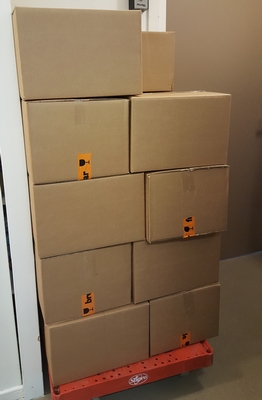 Vanmorgen een flinke donatie ontvangen van Vermaat: 100 pakketten met allerlei producten. Vanmiddag hebben alle clienten naast het gewone pakket, zo’n pakket extra meegekregen.