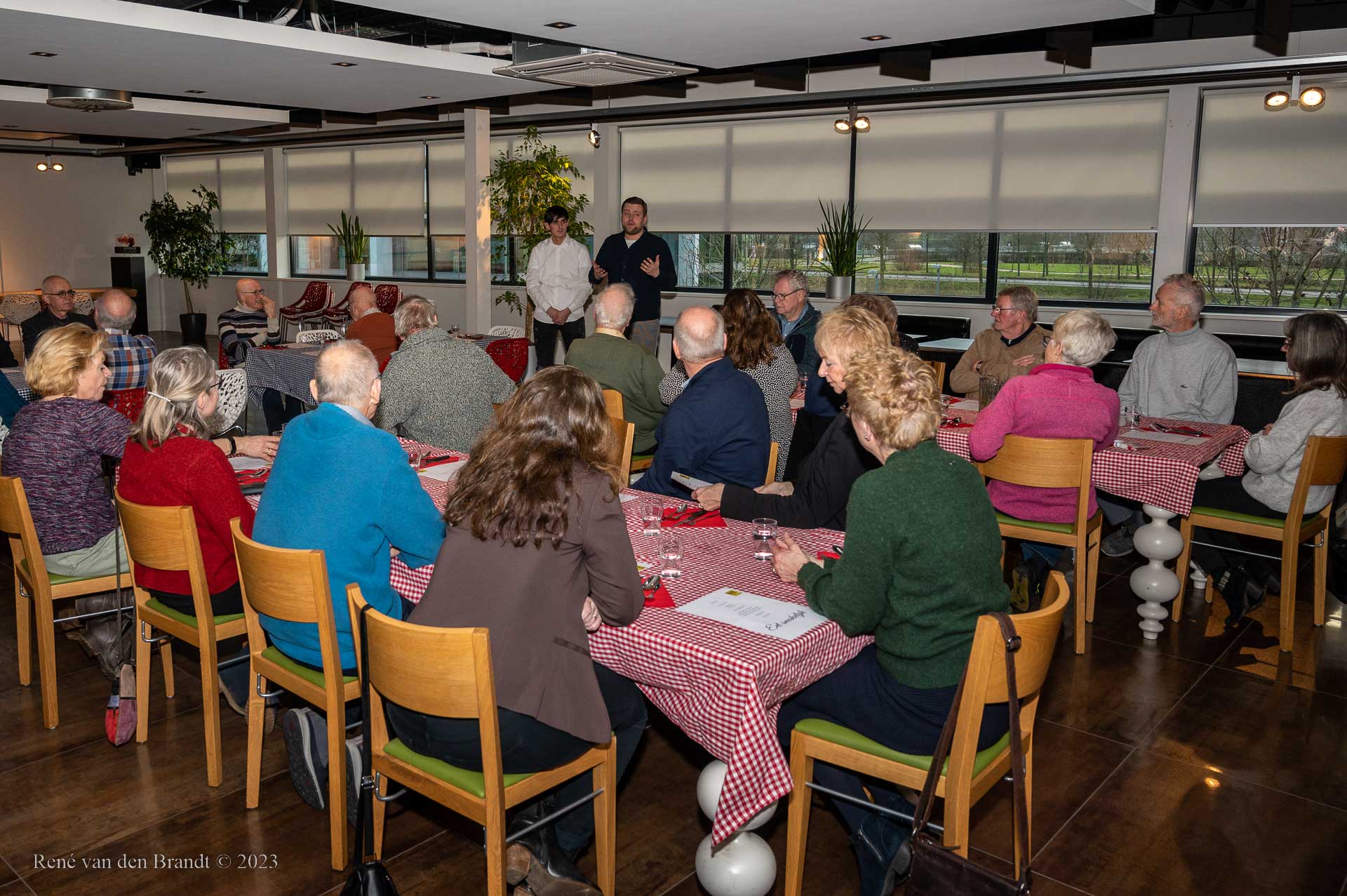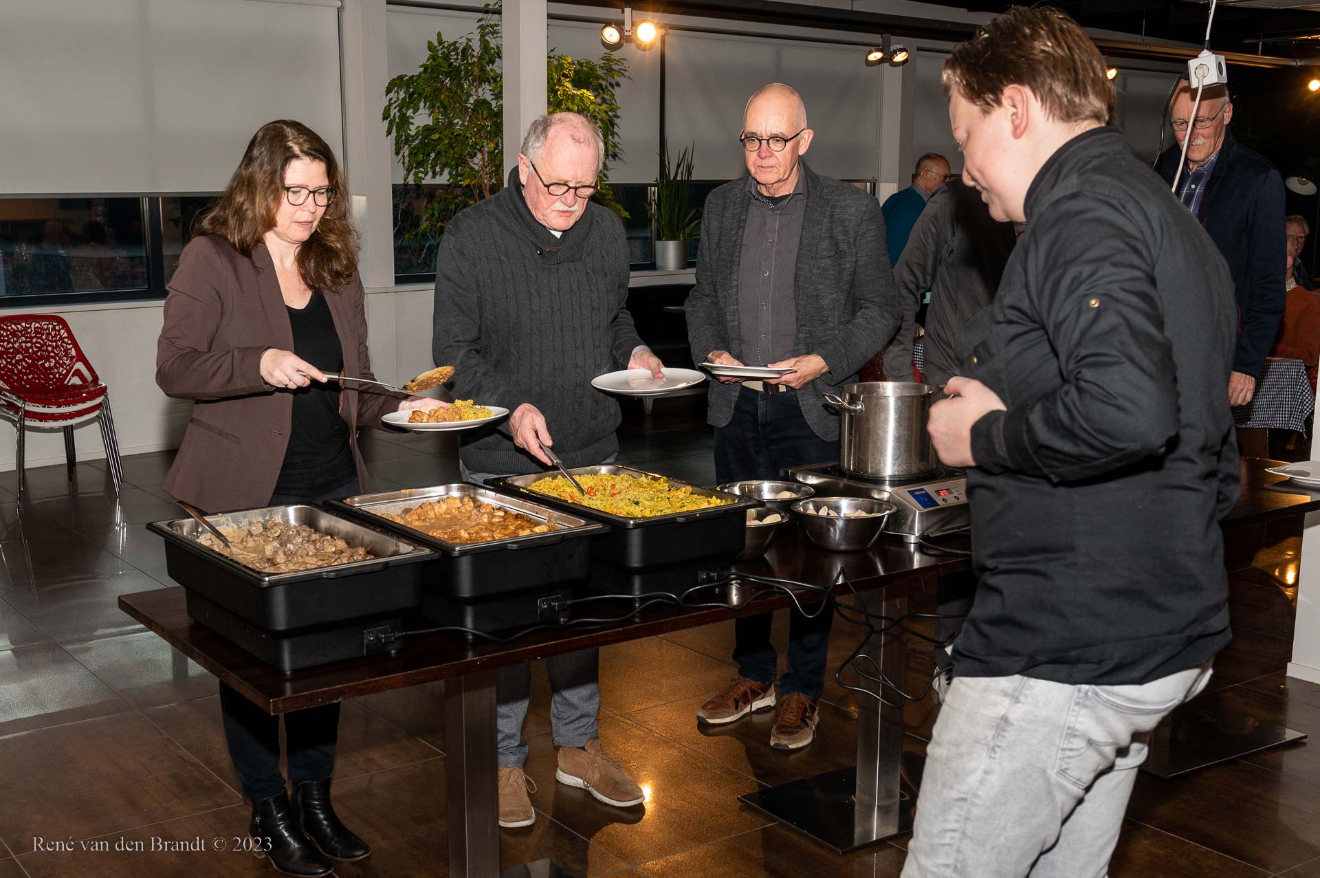 We hebben heerlijk gegeten in het gezellige SVO-restaurant waarbij we uitstekend verzorgd werden door de leerlingen. Het menu bestond uit kippen- of tomatensoep en als hoofdgerecht nasi goreng met biefstukpuntjes en kipsaté. En als toetje crème brûlée. Met speciale dieetwensen was rekening gehouden. De vrijwilligers waren het erover eens dat de leerlingen ruim geslaagd zijn voor hun opdracht en we hebben hen dan ook heel hartelijk bedankt!