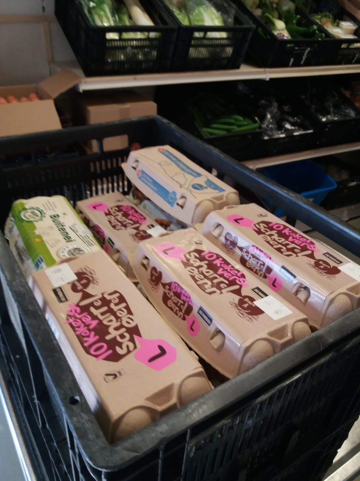 Sinds dit weekend werd besloten alle horeca te sluiten en mensen zoveel mogelijk moeten thuiswerken, heeft onze telefoon niet stil gestaan. Van restaurants, de SVO school, kinderdagverblijven, en een aantal bedrijfskantines hebben we veel mooie artikelen ontvangen. Groente, zuivel, sappen, eieren. Onze voedselbankwinkel is nu al mooi gevuld en het is nog geen vrijdag! Maar ook komende weken zullen onze klanten van deze producten kunnen meekrijgen.
