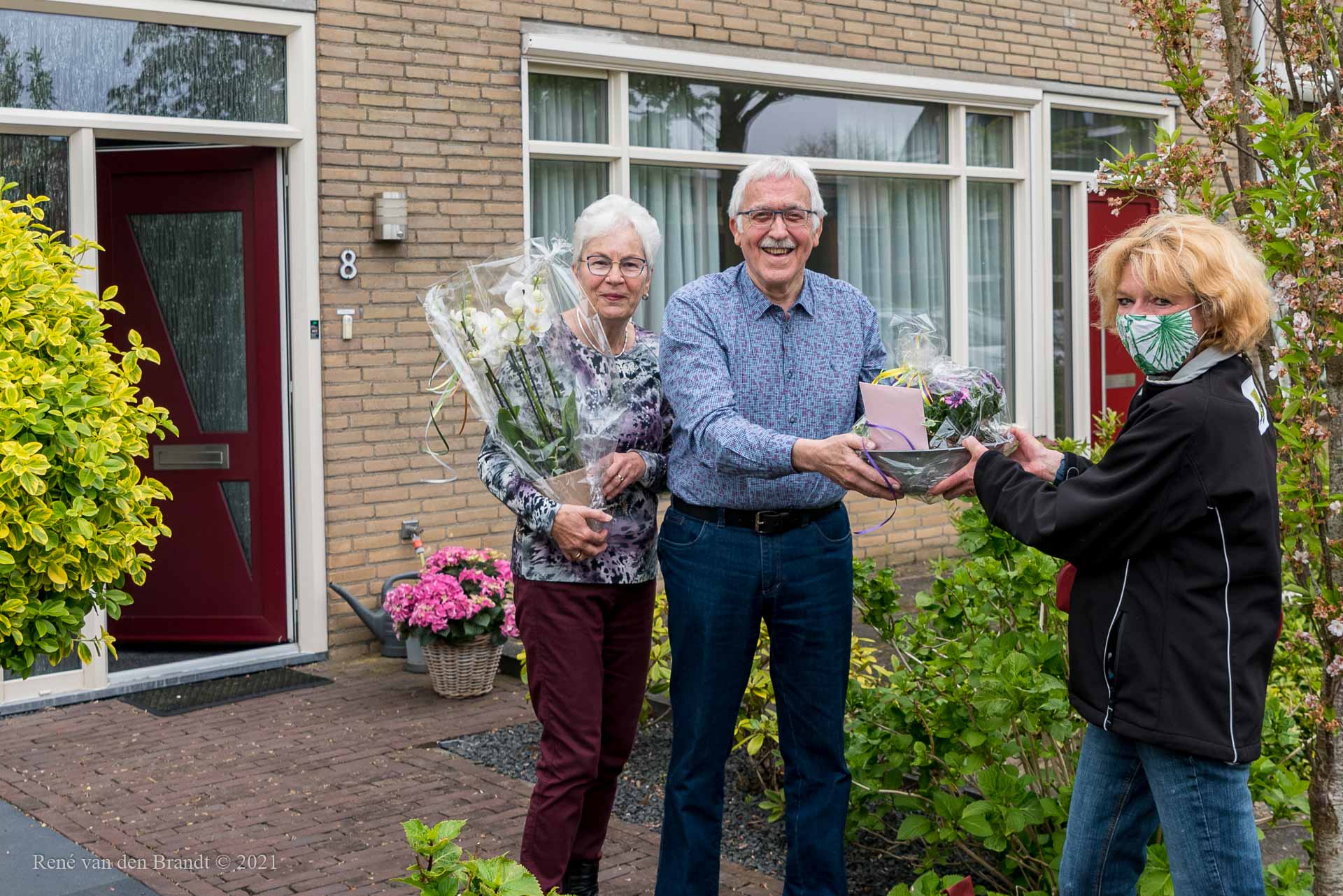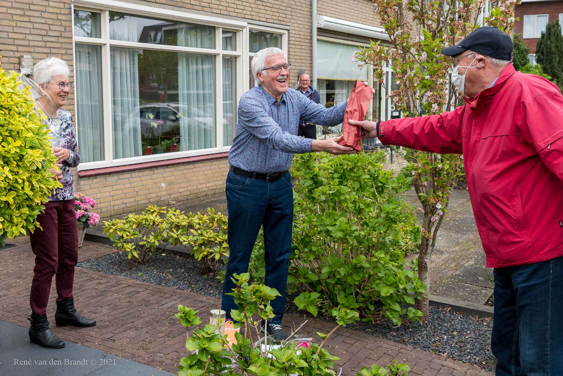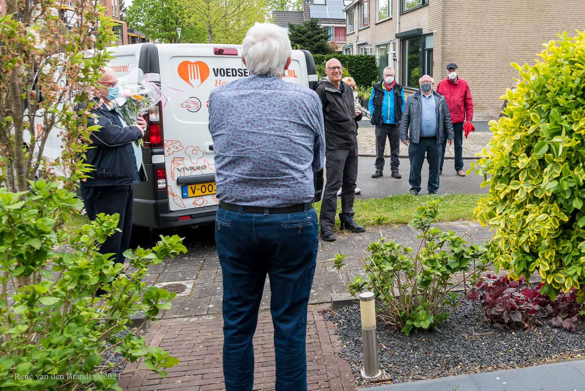 Ben de Jong heeft na 10 jaar voorzitter te zijn geweest van onze voedselbank, vandaag de voorzittershamer overgedragen aan Jan Mol. Een echt afscheid was niet mogelijk door corona, maar aan het eind van de laatste (digitale) bestuursvergadering stond er een groep vrijwilligers met een bloemetje en cadeautjes bij hem op de stoep om het moment niet ongemerkt voorbij te laten gaan. Ben vond dit erg hele leuke verrassing en was er heel blij mee.
