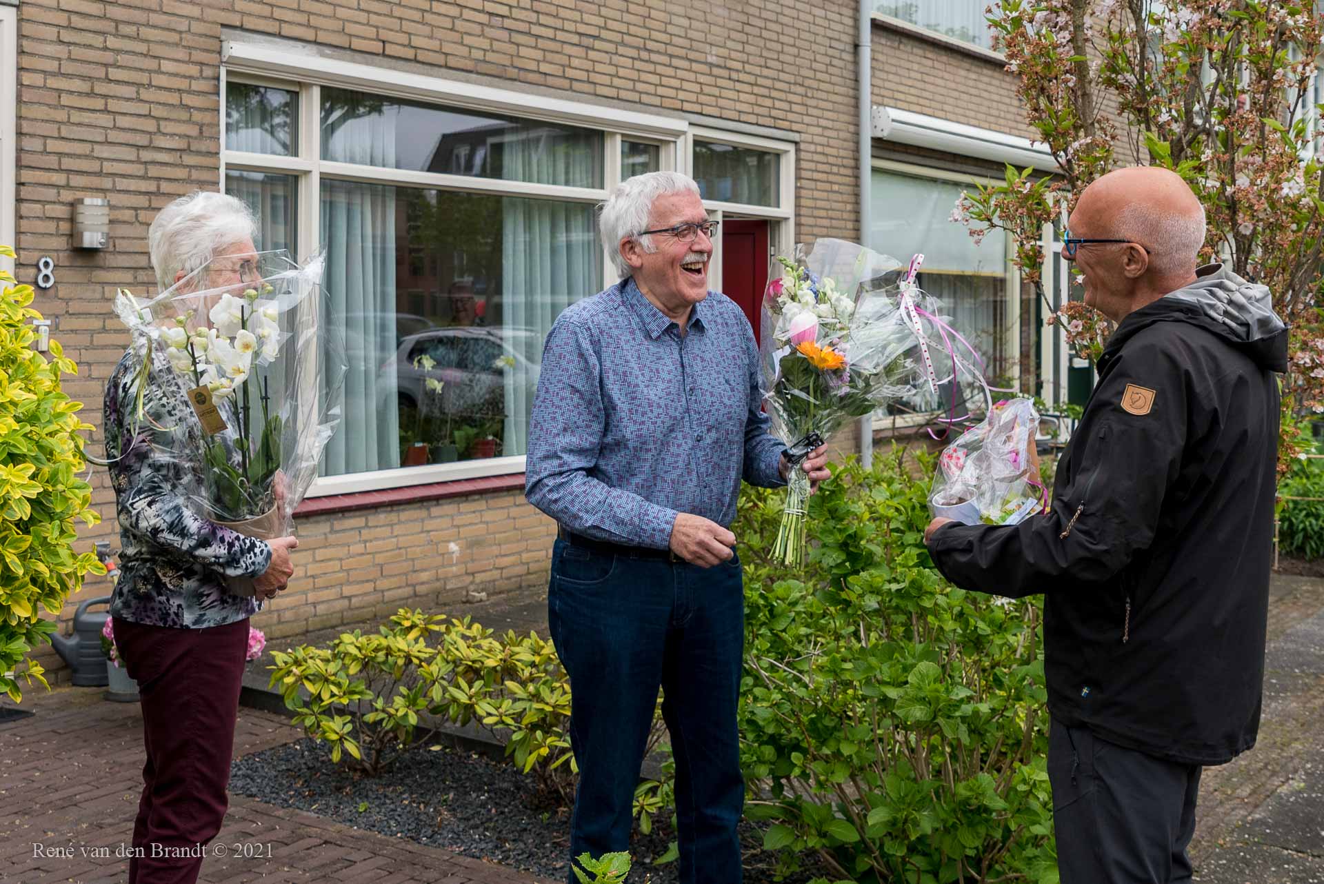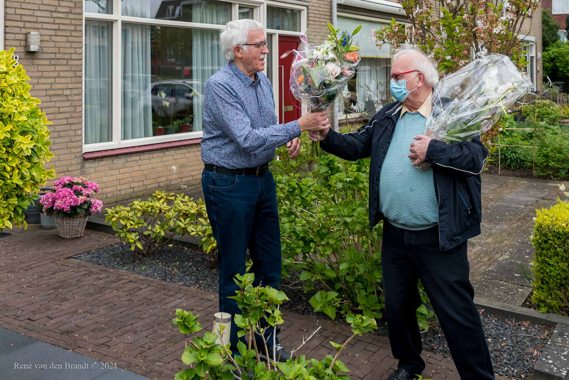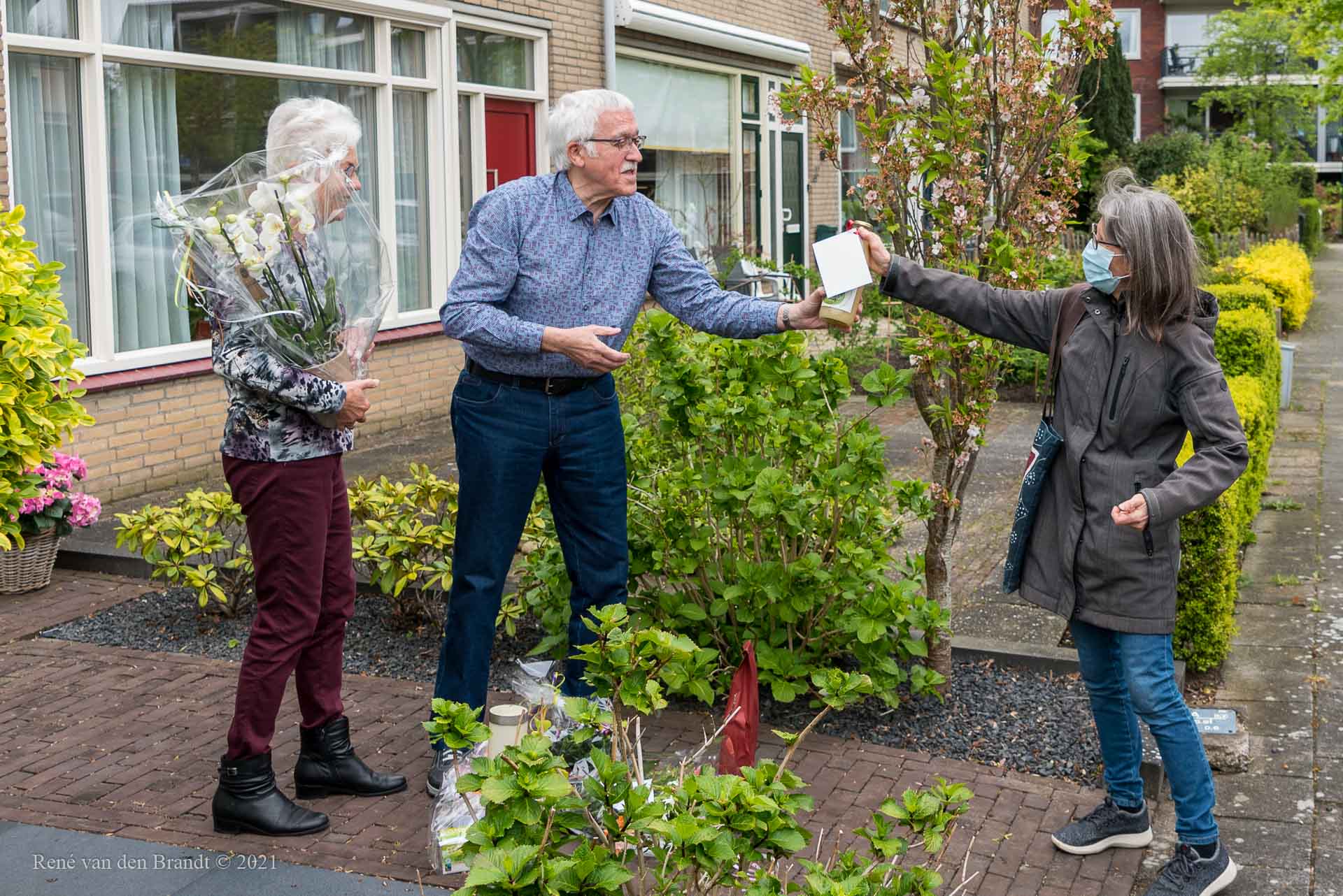 Ben de Jong heeft na 10 jaar voorzitter te zijn geweest van onze voedselbank, vandaag de voorzittershamer overgedragen aan Jan Mol. Een echt afscheid was niet mogelijk door corona, maar aan het eind van de laatste (digitale) bestuursvergadering stond er een groep vrijwilligers met een bloemetje en cadeautjes bij hem op de stoep om het moment niet ongemerkt voorbij te laten gaan. Ben vond dit erg hele leuke verrassing en was er heel blij mee.